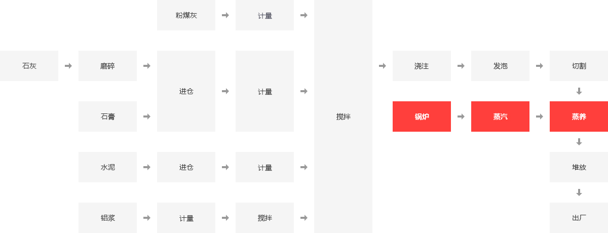 由于建材行業的鍋爐多是為工藝提供動能,但生產工藝相差極大,這里以建材中十分普遍的加氣塊生產為例。加氣塊生產線所需要的主要設備有切割機、破碎機、攪拌機、蒸壓釜等,還有一個重要的設備,那就是為加氣塊坯體提供蒸汽養護的鍋爐。在該生產工藝中,鍋爐主要為蒸壓釜的高溫高壓輸出高溫蒸汽,用于對加氣塊坯體進行水熱反應,可提高制品的強度以及性能。大多數情況下,建材行業所用鍋爐是用于生產供汽的蒸汽鍋爐,不過也確實有不少建材企業購買熱水鍋爐用于供暖、供熱水的情況。